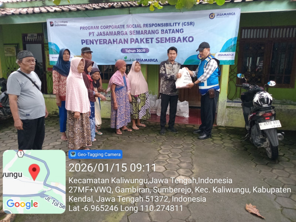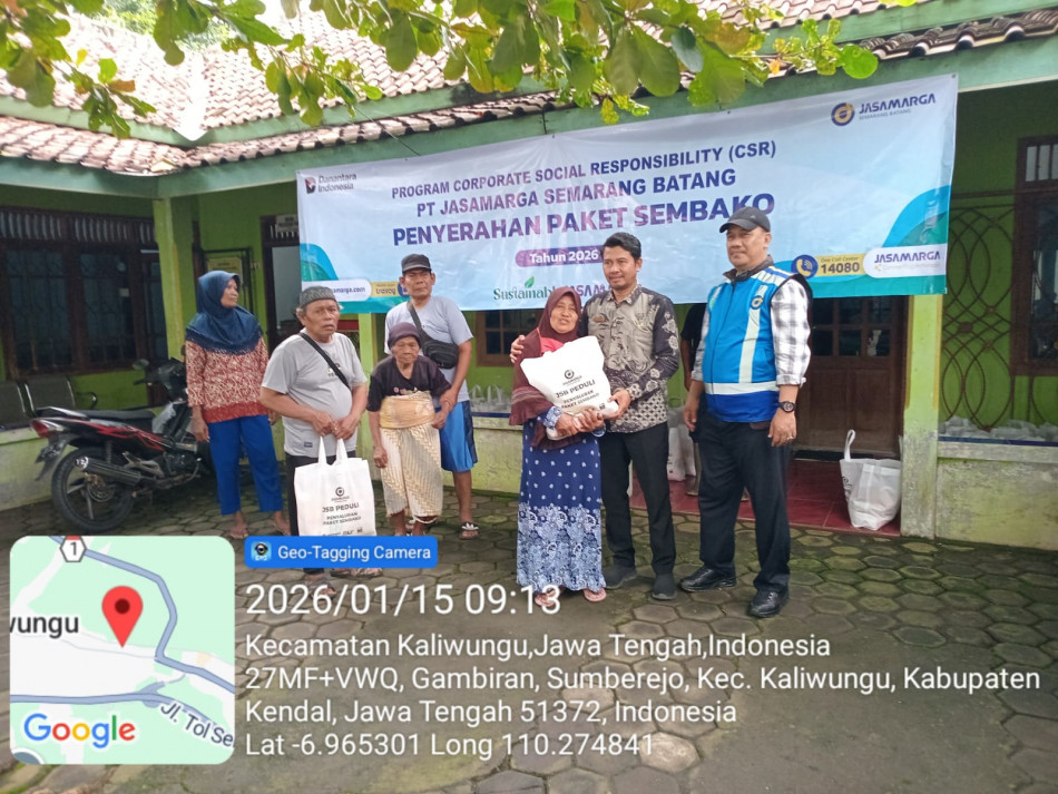 Sumberejo.desa Kegiatan Pembagian Sembako dari CSR Jasa Marga dilaksanakan pada hari Kamis tanggal 15 Januari 2026 diBalaidesa Sumberejo.