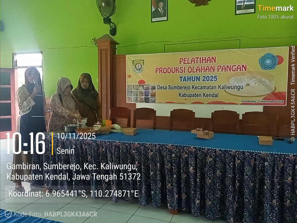 Program Pemberdayaan bagi warga yang dilaksanakan di Desa Sumberejo salah satunya adalah Pelatihan Olahan Pangan yang dilaksanakan hari Senin 10 November 2025 jam 08.30 Wib - selesai di Balaidesa Sumberejo.