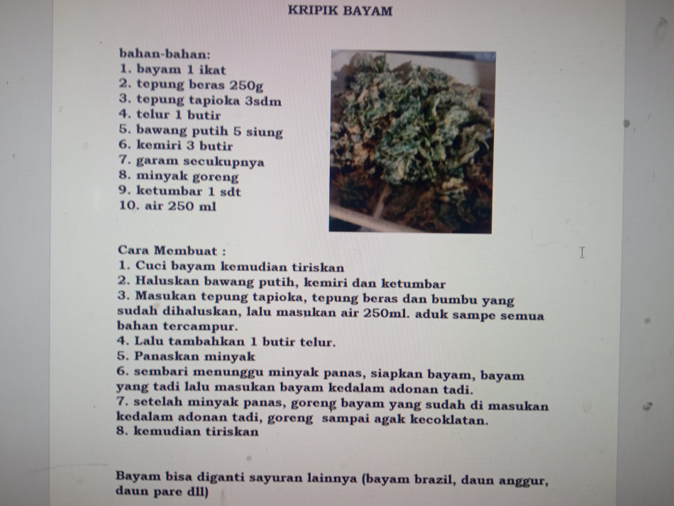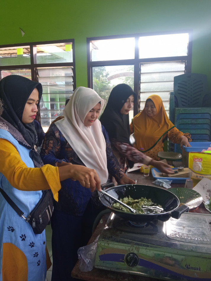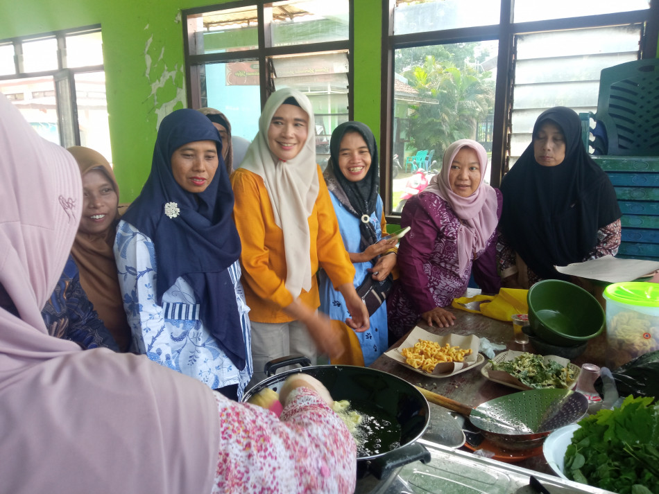 Olahan pangan yang dipilih adalah yang bisa dilakukan setiap saat bagi warga yaitu pembuatan kripik bayam, bayam brazil, daun anggur dan Kue Unthug.