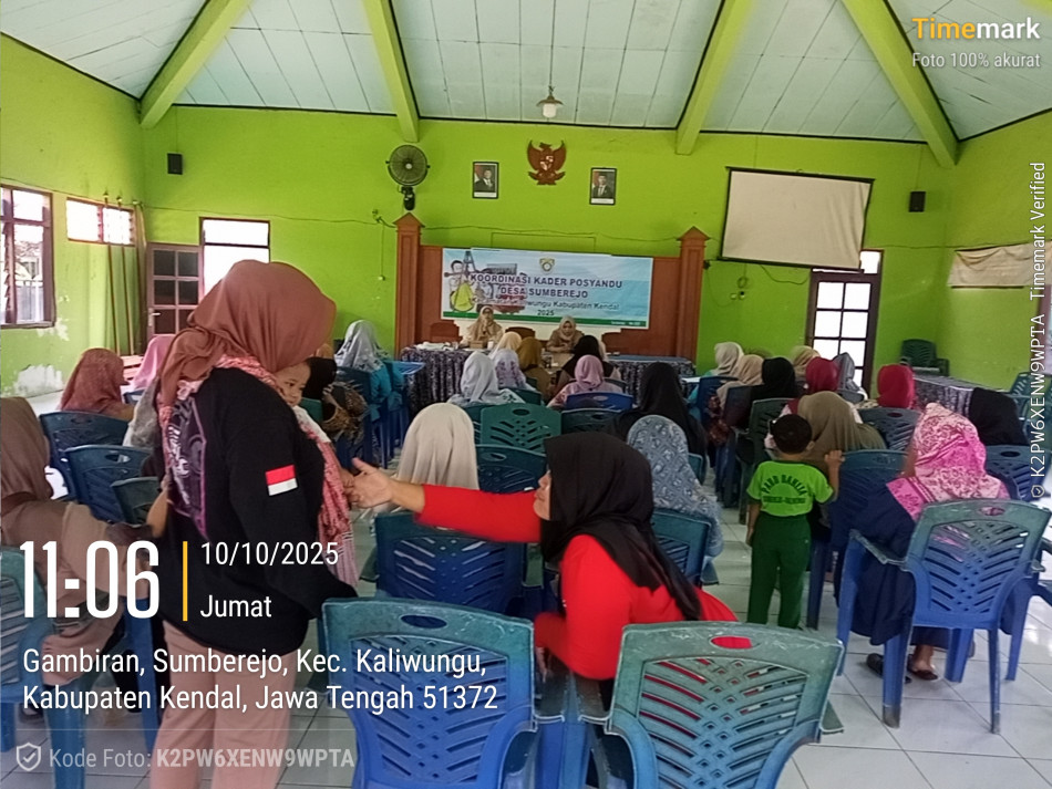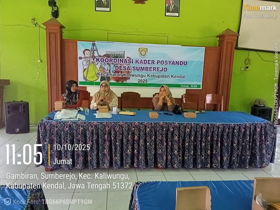 Koordinasi Kader Posyandu Sumberejo Rahayu 1 sampai Sumberejo Rahayu 10 Desa Sumberejo dilaksanakan hari Jumat tanggal 10 Oktober 2025 jam 09.00 Wib - Selesai di Aula Desa Sumberejo.